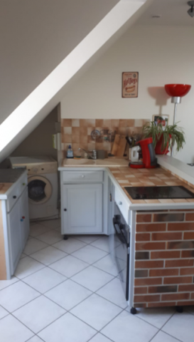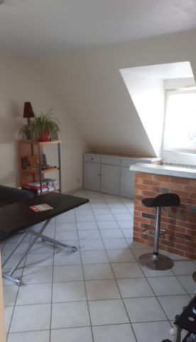 Appartement mansardé au 2ème étage type F2 27.57m2 loi Carrez (15 min de la gare a pieds ligne Le Mans Paris Montparnasse) comprenant séjour avec coin cuisine ; depuis ce séjour un dégagement desservant une chambre avec placard intégré, une salle de bains avec baignoire et WC séparé.
