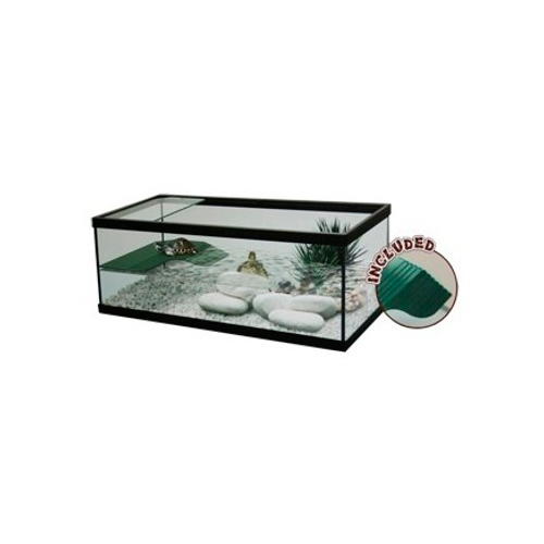 loger confortablement une ou plusieurs tortues ou bien des reptiles aquatiques ou des amphibiens. Le bac est entièrement en verre afin de les observer à tout moment, à l'exception des bords qui sont en plastique noir, également disponible en blanc.
