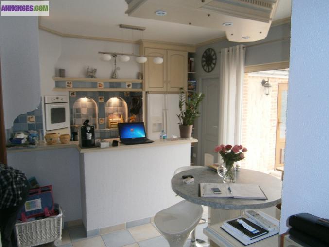 Beau particulier Rémois 160 m² comprenant : cuisine équipée ouvrant sur une grande terrasse couverte et équipée d'un barbecue en pierre terrasse descendant dans beau jardin 90 m² arboré (cerisier et prunier) et clos de mur sans vis-à-vis, abri jardin, abri bois, abri linge, cuisine ouverte sur salon équipé d'une cheminée à insert, étages desservis par un bel escalier et plancher en chêne (neuf ), 4 chambres, salle de jeux, grande salle de bains équipée douche et balnéo, toilettes à tous les étages, cave sous toute la maison. Chauffage au gaz.