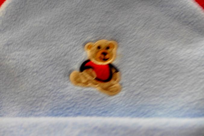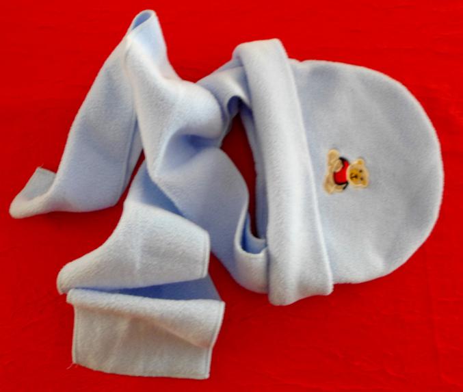 Bonnet-écharpe tissus teinte bleu ciel, motif ourson Expédition possible, port en sus