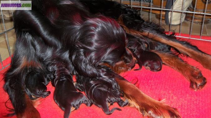 à réserver chiots setter-gordon nés le 11.05.2013, 11 chiots dont 6 magnifiques petits males et 5 magnifiques petites femelles.