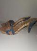 sandale guess neuve jamais porté taille 40 talon moins de dix centimetres prix d achat 150euros couleur marron et tissu jeans sur la bride et talon sandale avec emballage
