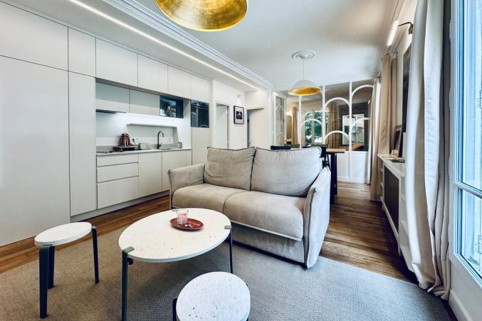 Le salon est equpées d'aspirateur, bouilloire, canapé lit 2 places.