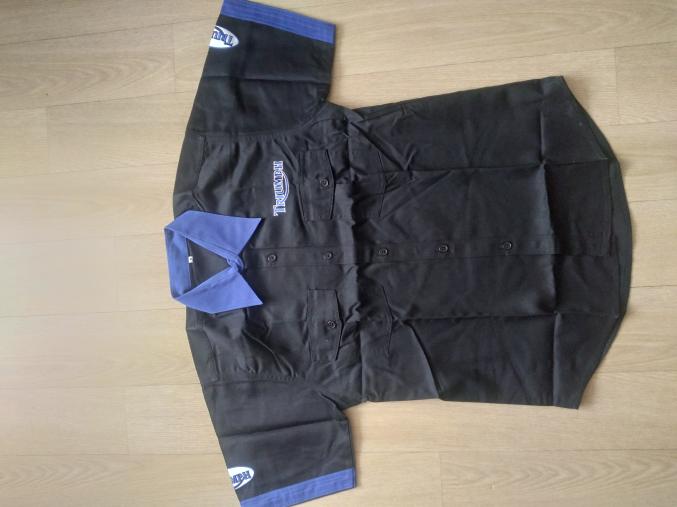 Chemise Triumph motorcycles pour homme à manches courtes. Fabrication 98 % polyester et 2 % élasthanne. Logo brodé sur le dos et rappel sur la poitrine. Coupe chemise classique, Regular Fit.