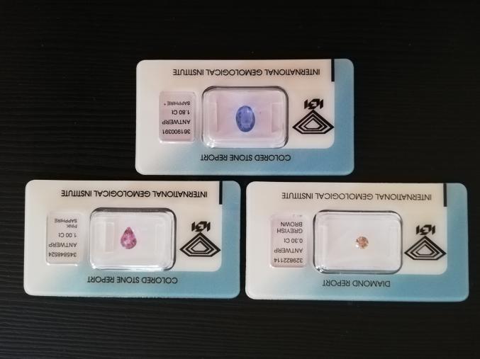 Combi un diamant et 2 saphirs à vendre - 3300 € si vous achetez les 3 ensembles.