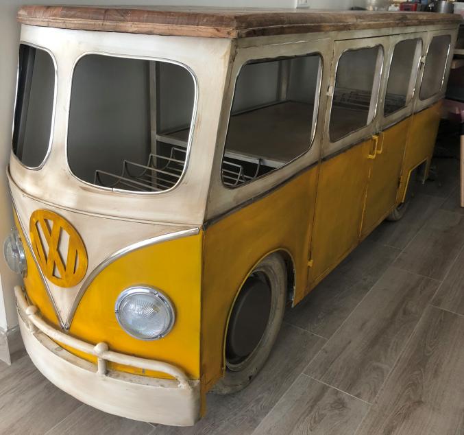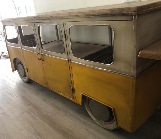 Comptoir Bar neuf, fait à la main en metal et bois de mangue non traité.