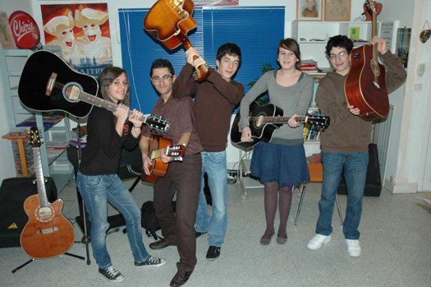 Les cours de guitare s'adressent aux passionnés, aux curieux, aux amateurs à partir de 10 ans. Les débutants vont bien sûr passer par les bases obligatoires, tenue de l'instrument, les premières séances où les cordes font mal aux doigts, où les mains ne sont pas encore habituées à l'instrument ... Mais par la suite, le plaisir est enfin au rendez-vous. Différents styles sont proposés, classique, folk, bossa, picking, blues, jazz, accompagnement à travers la connaissance des accords, arpèges, gammes, techniques de main droite et de main gauche. Les morceaux sont choisis progressivement en fonction de leurs difficultés et un support papier et audio sont proposés à chaque élève. Il est demandé que chacun travaille sur sa propre guitare afin d'y trouver ses marques au plus tôt. Une attention toute particulière est donnée à la lecture du rythme. Si le solfège n'est pas primordial grâce aux tablatures qui facilitent grandement le travail du guitariste débutant, une bonne connaissance des formules rythmiques est indispensable. Le travail se fait progressivement au fil des exercices et des morceaux. Pour les élèves ayant dépassé le stade du débutant, une aide et un accompagnement personnalisés sont proposés dans les domaines de leur choix. Les séances durent ¾ d'heure pour les enfants et 1 heure pour les adultes. Il est recommandé de maintenir un rythme d'une séance par semaine.