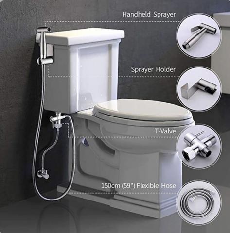 1x pulvérisateur de bidet avec clapet anti-retour intégré ; (Acier inoxydable SUS304)