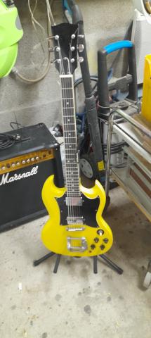 Guitare électrique de marque Japonaise RYAN année 1978. Restauré. Manche cassé remplacé par un neuf. peinture du corps refait. Micro, bouton et accessoire d'origine. Les cordes ont neuves. avec cette guitare, il y a un accordeur et une mallette étuis de marque X-TONE, lot de médiators et une sangle noir tous ceci neuf.