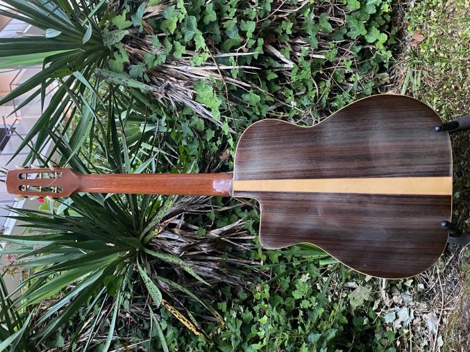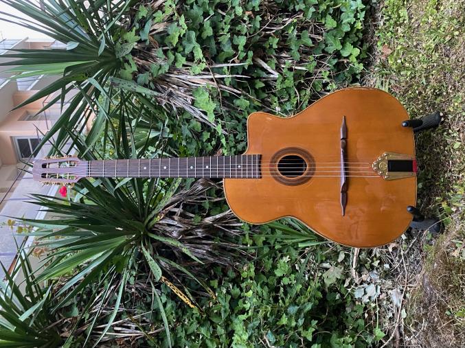 Equipée d’un dispositif d’amplification sonore a partir du chevalet et entrée jack