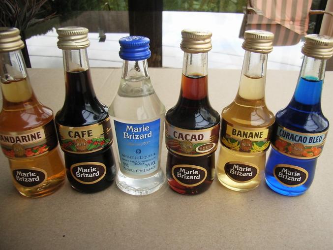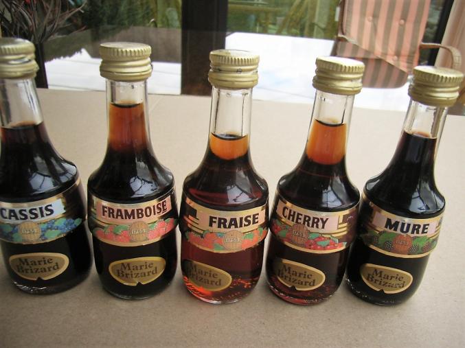 Les parfums sont les suivants : banane , noisette , curacao bleu , cassis , abricot , parfait amour , café , pêche , mandarine , cerise , framboise , fraise , coconut , cacao , kiwi , menthe , mûre , poire william , pepermint .