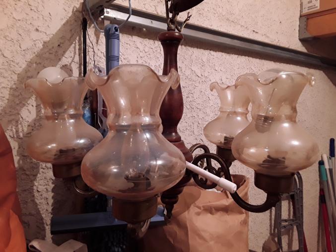Vends lustre cinq branches bon état , couleur rose bronze , decor fleuri matière bronze er bois massif . ......................................................................................................