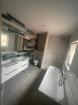 UNE SALLE DE BAINS AVEC BAIGNOIRE, DOUCHE, DOUBLE VASQUE ET WC.