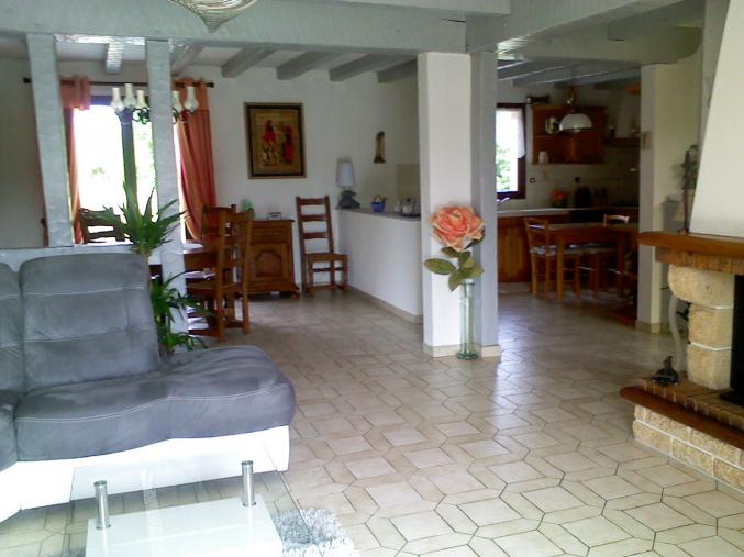 RDC: entrée, pièce à vivre de 45m2, cheminée insert récupérateur/ diffuseur chauffage bois, cuisine ouverte A/E, cuisine été avec grand placard donnant sur terrasse de 65m2 avec barbecue, 1 chambre, SDB, WC.