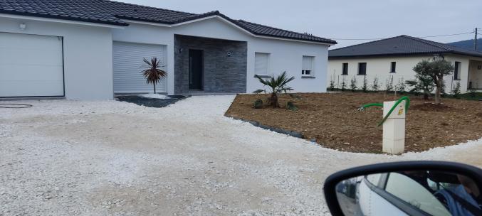 Maison neuve 105m plus grand garage 28m ,3chambres donc la chambre parentale avec salle de bain douche italienne,salon ouvert a la cuisine équipée Cuisinella climatisation réversible, cellier pour également servir pour bureau jardin de 800m arboré deux salle de bain et deux WC volet roulant électrique proche de tous commerce mais avec le calme de la campagne premier contact par email photo supplémentaire sur demande agence abstenir