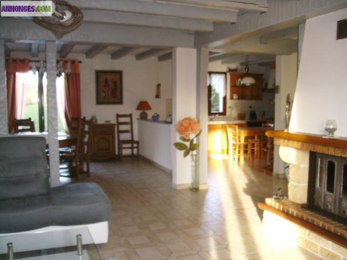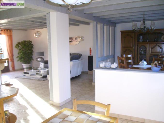RDC: entrée, salon/sam 43m2, cuisine ouverte aménagée, cuisine été, chambre,WC, SDB.
