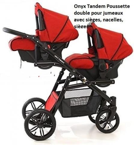Onyx Tandem Poussette double pour jumeaux avec sièges, nacelles, sièges auto groupe 0 et accessoires Rouge à 309€ sur notre site
