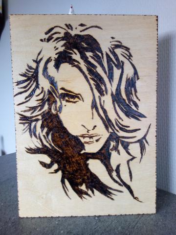 PYROGRAVURE FAITE MAIN SUR BOIS DE 30CM SUR 20 CM VERNI AU PINCEAU