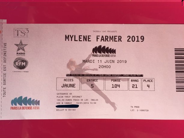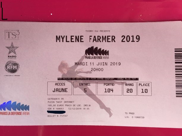 Places catégorie OR pour le concert de MYLENE FARMER le 11 juin 2019 à PARIS Rang 20 Place 10 et Rang 21 Place 4 (pas loin).