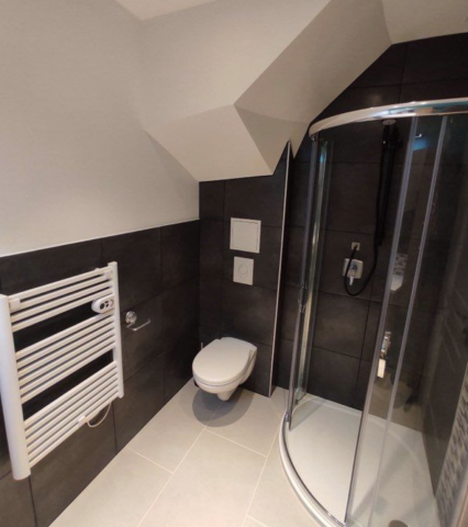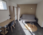 Studio meublé 23m2, cuisine équipée avec plaque, four, micro-onde, petit frigo et hotte. Douche avec chauffe-serviette et salon avec canapé-lit, un bureau et des rangements.