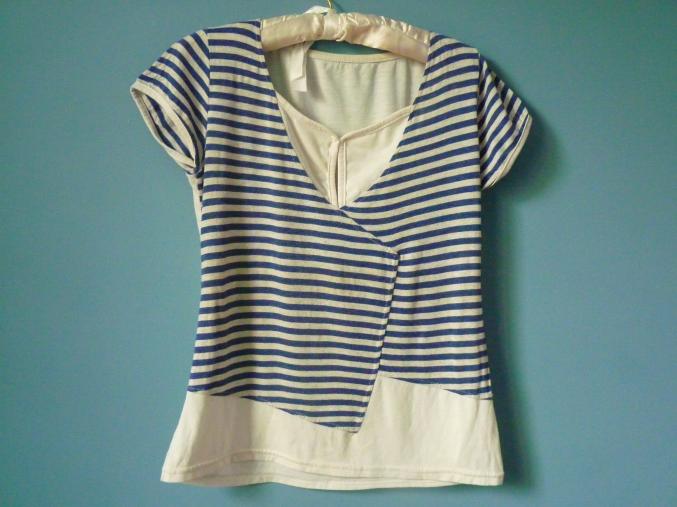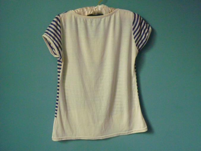 Blanc et bleu rayé avec un decolleté goutte d'eau