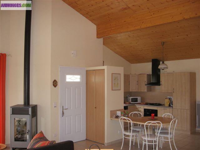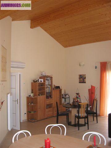 Superbe villa récente d'architecture Landaise affirmée, Proximité Plage, Lac de Léon, village, commerces, en bordure de forêt, dans quartier résidentiel calme et aéré; Grand volume déplafonné, énergies renouvelables, climatisation, poêle à bois nouvelle technologie, cuisine équipée, 3 terrasses extérieures carrelées, dont 1 couverte, 4 chambres spacieuses et un espace à aménager de 40 m2 entièrement terminé, 2 Salle de bains dont 2 baignoires et une douche Italienne, 2 WC, placards avec rayonnages , surface totale 165 m2 habitable . Tél 06 74 43 22 12