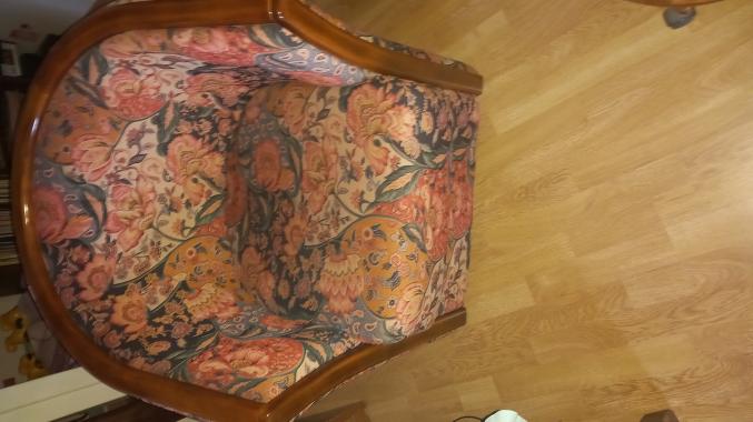 Vend salon canapé 3 places convertible en couchage Long 2.15ml avec 2 fauteuils crapeau avec repose pieds en tissus velouté fleuri très bon état