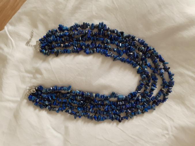 Vends collier de lapis lazuli 5rangées perles de chips 25euros sacs d'aventurines (14) 20euros et un collier argent et cornaline 25euros.Pas d'envoi.