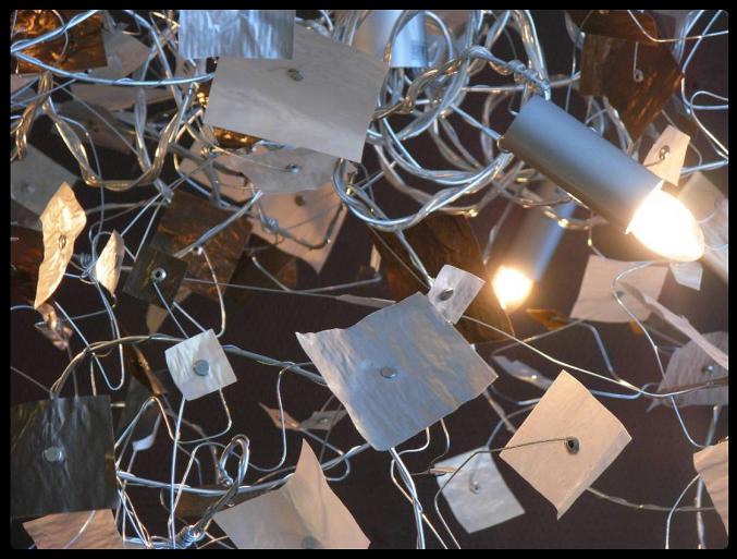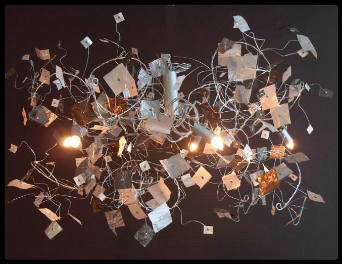 lustre 5 ampoules, portant des centaines de papiers. A déployer soi-même selon le volume de la pièce.