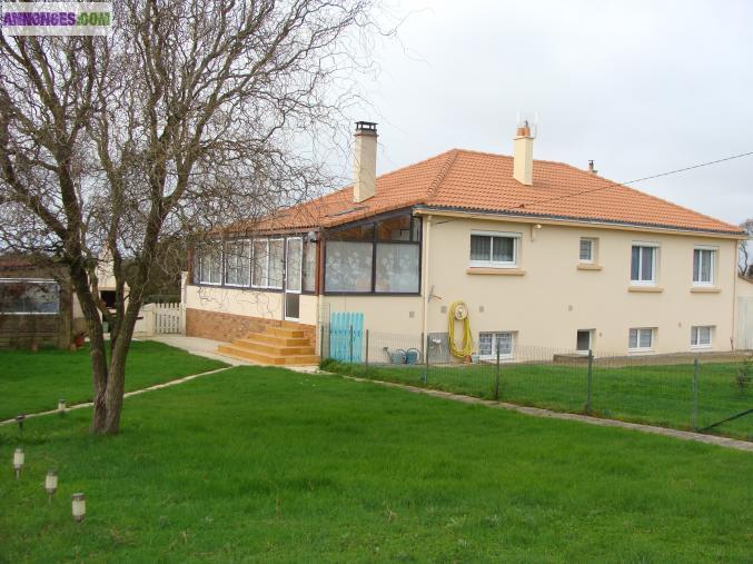 description:maison en rdc surélevé:salon séjour avec cheminée cuisine aménagée et équipée, véranda,salle d eau,wc,quatres chambres avec placards