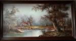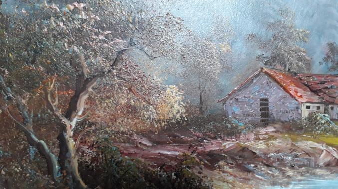 Tableau peinture acrylique sur toile : "Paysage Automne", cadré bois authentique, dimension: 130/70
