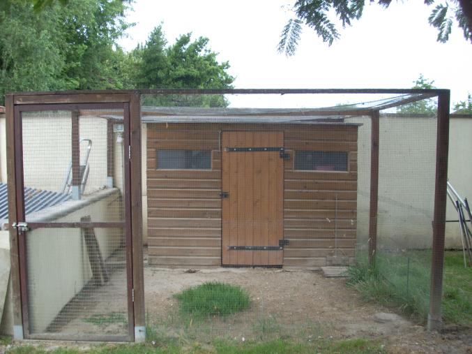 poulailler en bois à remonter haut 1m60 x long 2m22 x 1m10 façade devant avec 2 fenêtres en plexiglas porte 1m50x 0m69 toiture plaque de zingue avec dessous en bois