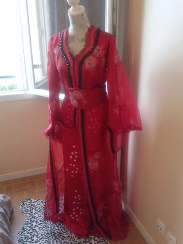 La takchita rouge avec les perles noir est à 65 euros, la pièce en dessous est brodée.
