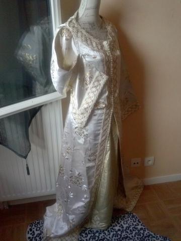 Le caftan blan doré avec un serwal brodé est à 55 euros
